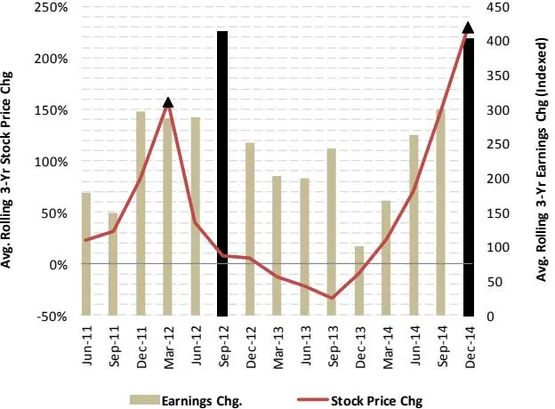 Exhibit 1 – Avg. small-cap price chg. (3-yr) vs. Avg. earnings chg.